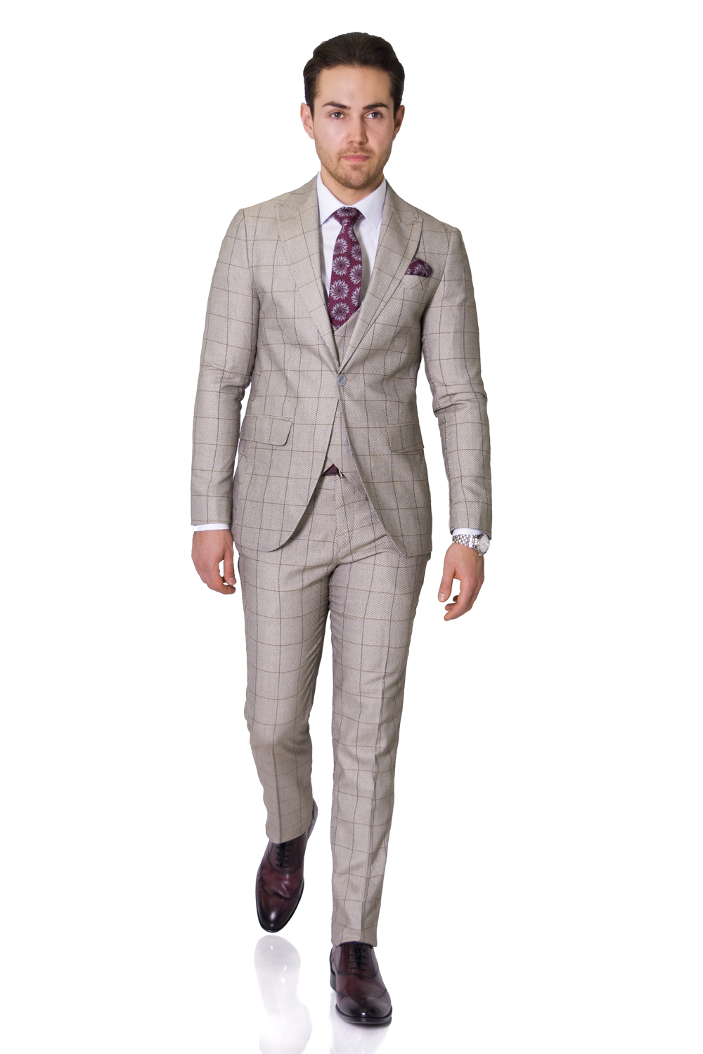 Costum Crem cu Dungi Lana