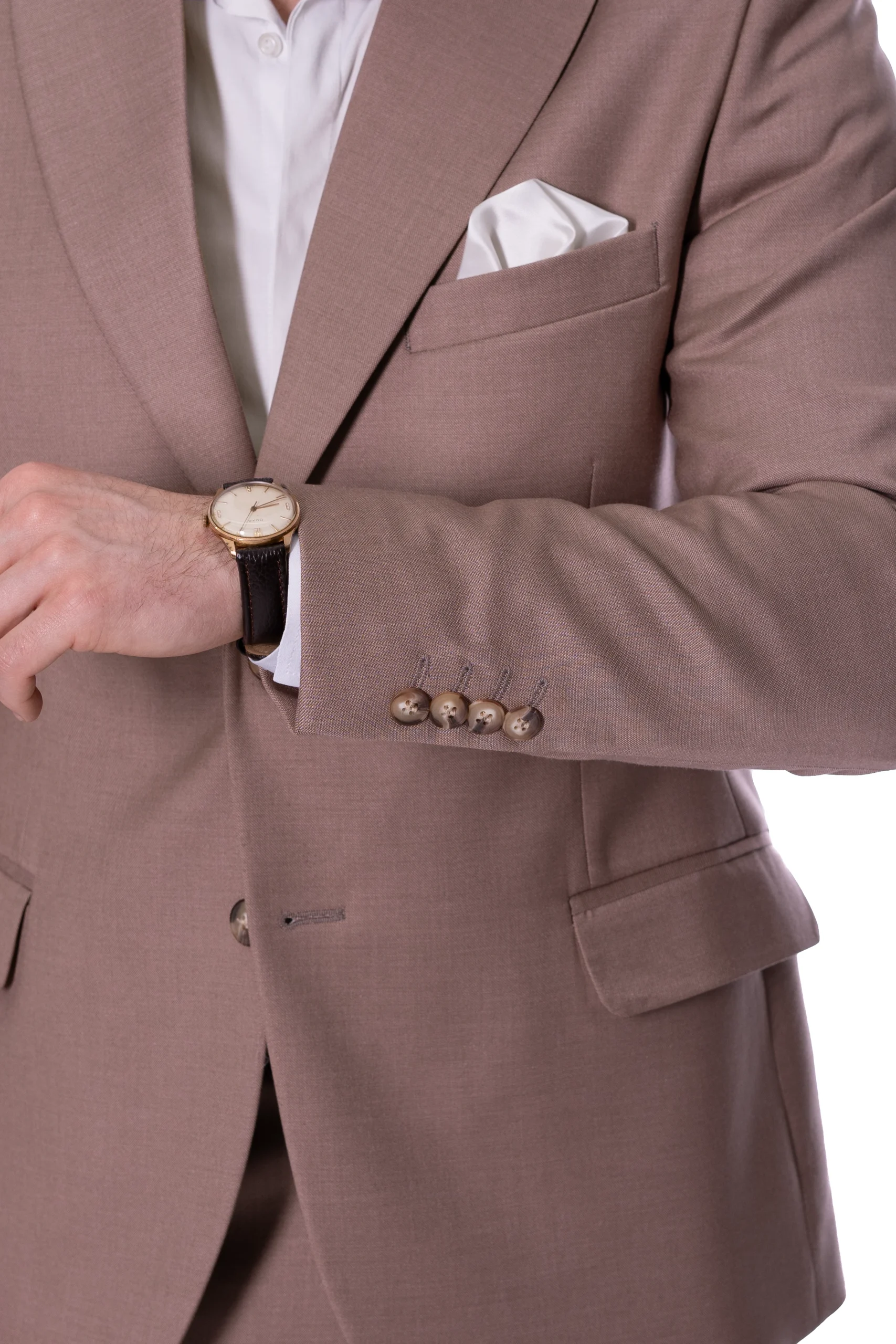 Costumul Bej Închis din Bumbac – Este alegerea ta pentru evenimentele în cadrul cărora trebuie să fii relaxat și rafinat, are reverul Peak/Ascuțit, iar materialul din bumbac îi conferă durabilitate și o bună păstrare a ținutei în timp. Fabricat în România
