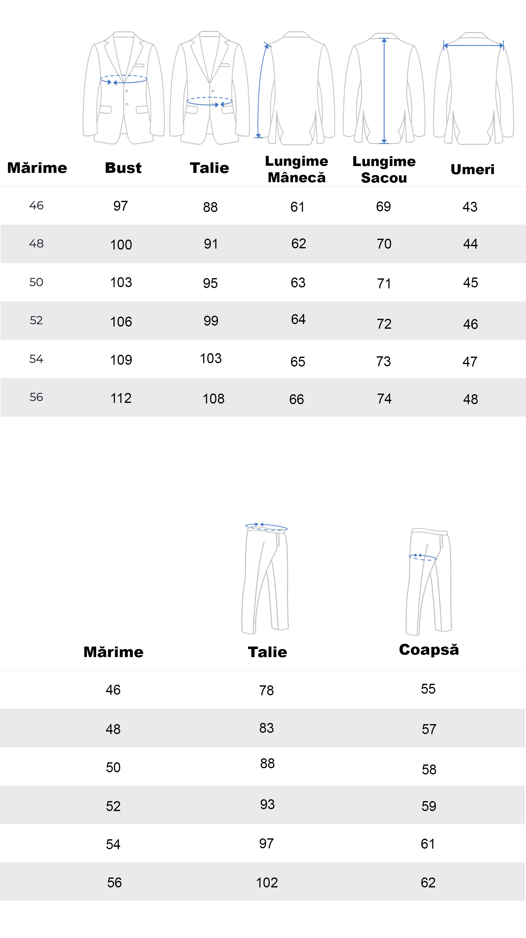 tDeoarece fiecare persoană are înălțimea și grosimea picioarelor diferită, pantalonii trebuie ajustați la croitor de la genunchi spre călcâie după bunul plac. tÎn cazul în care pantalonii se închid la limită în jurul taliei, aveți material în plus pe interior lăsat pentru a-l face mai lejer cu ajutorul unui croitor. |