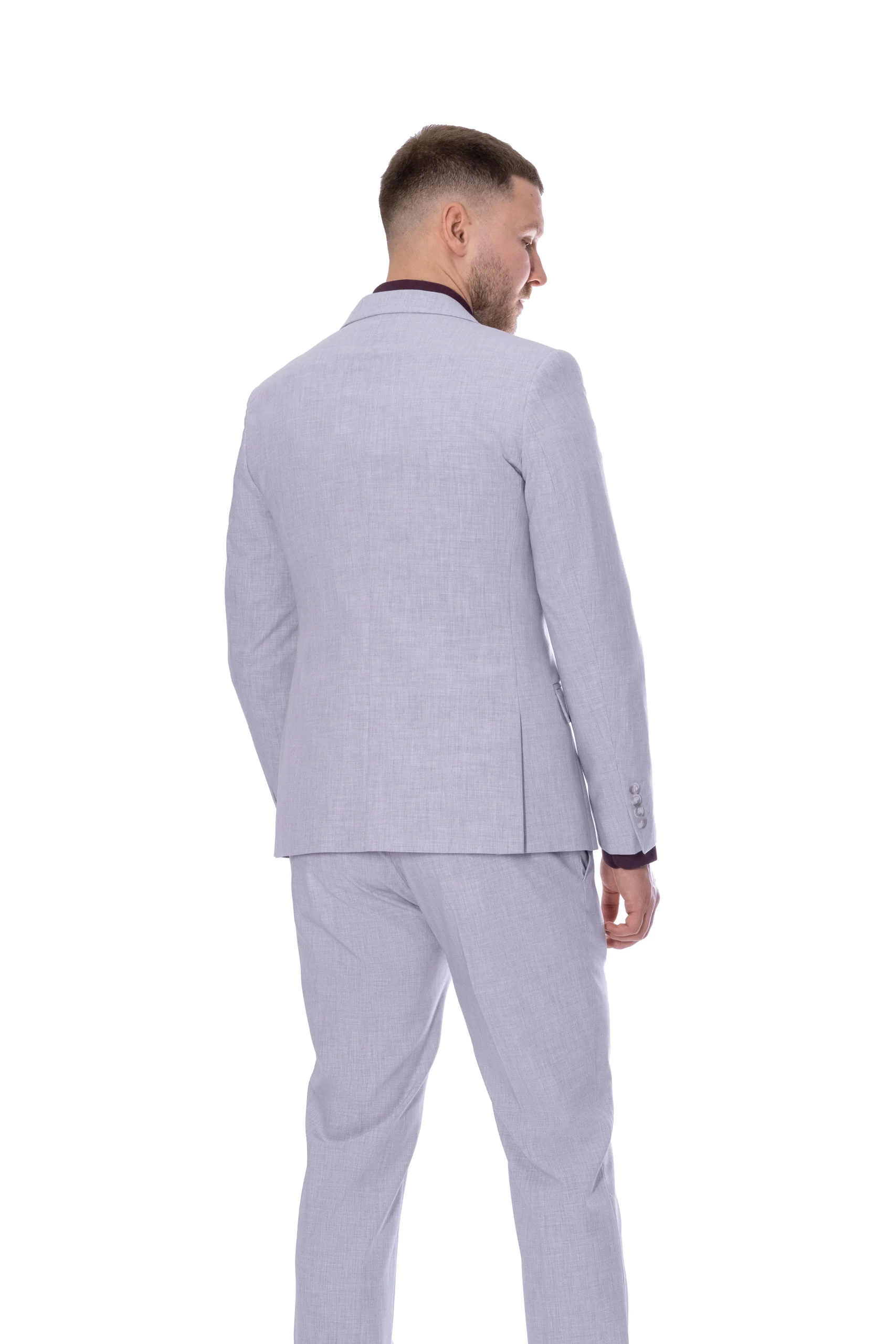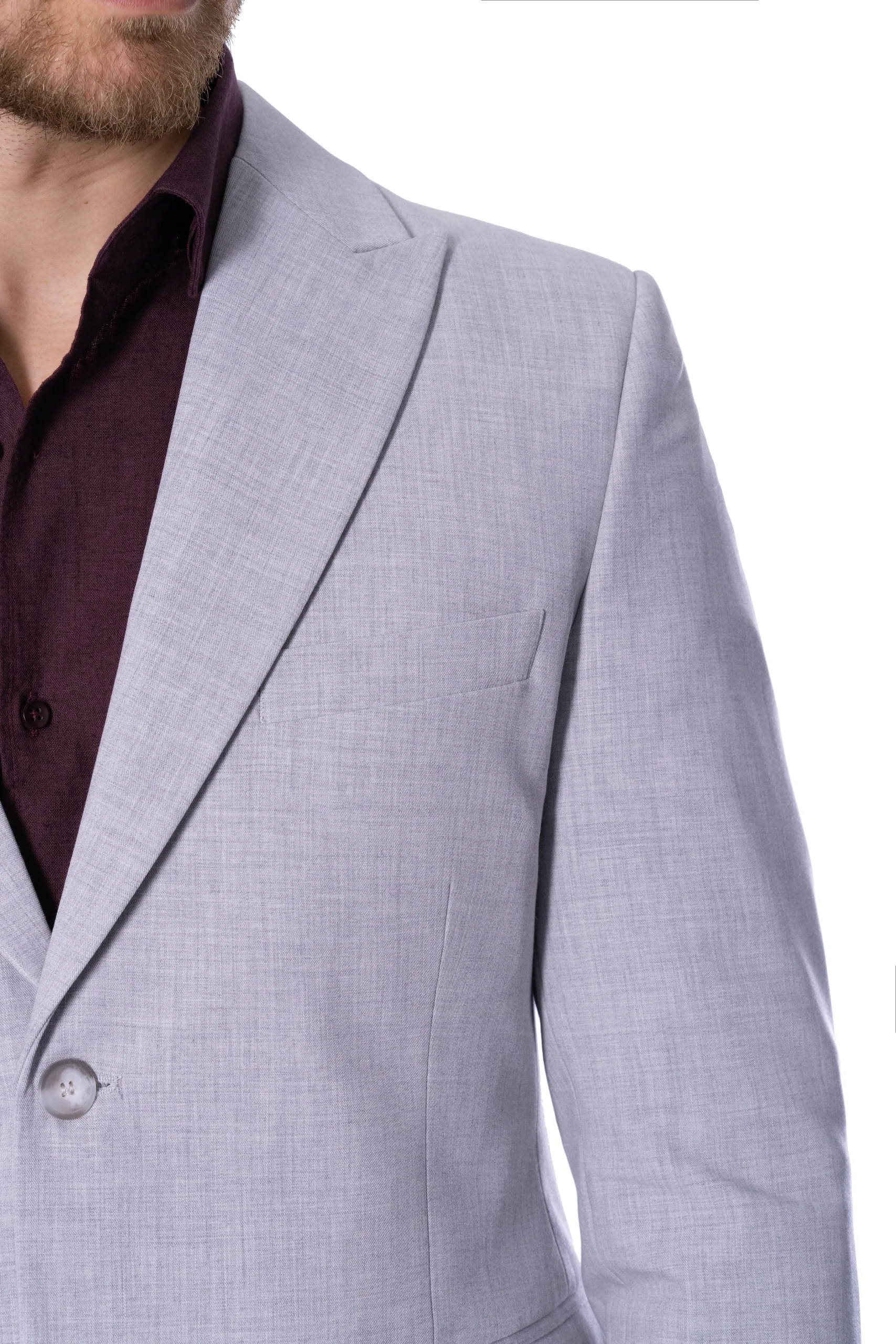 Costumul Gri din Bumbac – Este alegerea ta pentru evenimentele în cadrul cărora trebuie să fii relaxat și rafinat, are reverul Peak/Ascuțit, iar materialul din bumbac îi conferă durabilitate și o bună păstrare a ținutei în timp. Fabricat în România