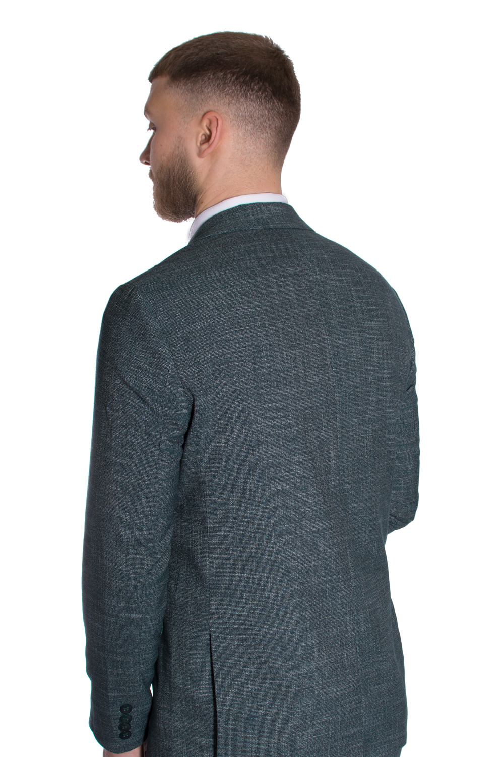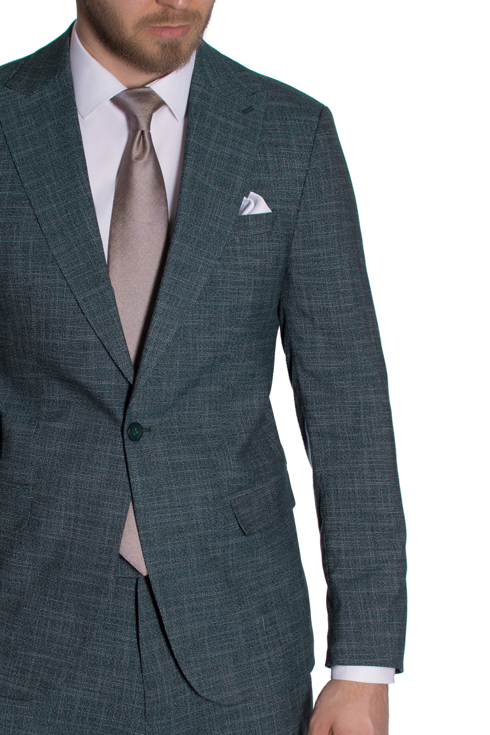 Costum verde alcatuit din trei piese: sacou, vesta si pantaloni. El reprezintă un articol statement din garderoba unui bărbat.