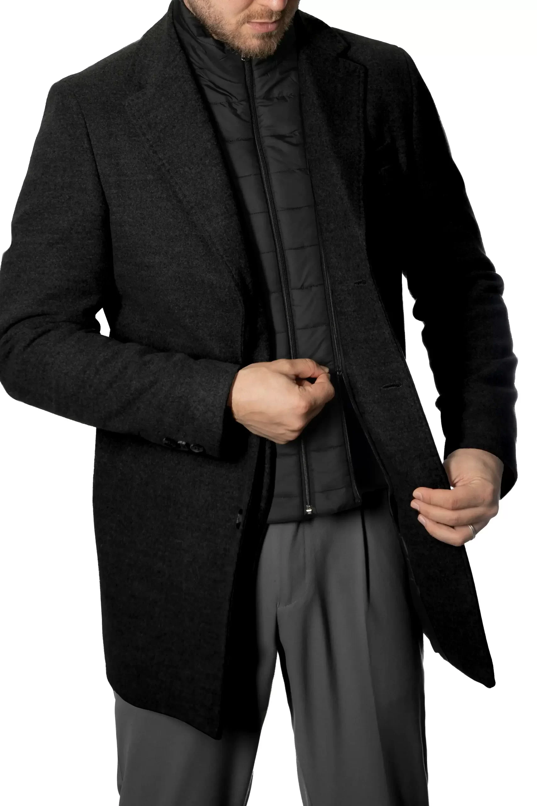 Palton Negru cu Vesta Detasabila – Designul clasic, funcționalitatea acestuia, croiala dreapta și structura vor ridica nivelul rafinamentului tău într-o zi obișnuită la birou. Vesta îi conferă un plus de confort termic, dar aceasta poate fi detașată pentru un look mai curat din punct de vedere estetic.