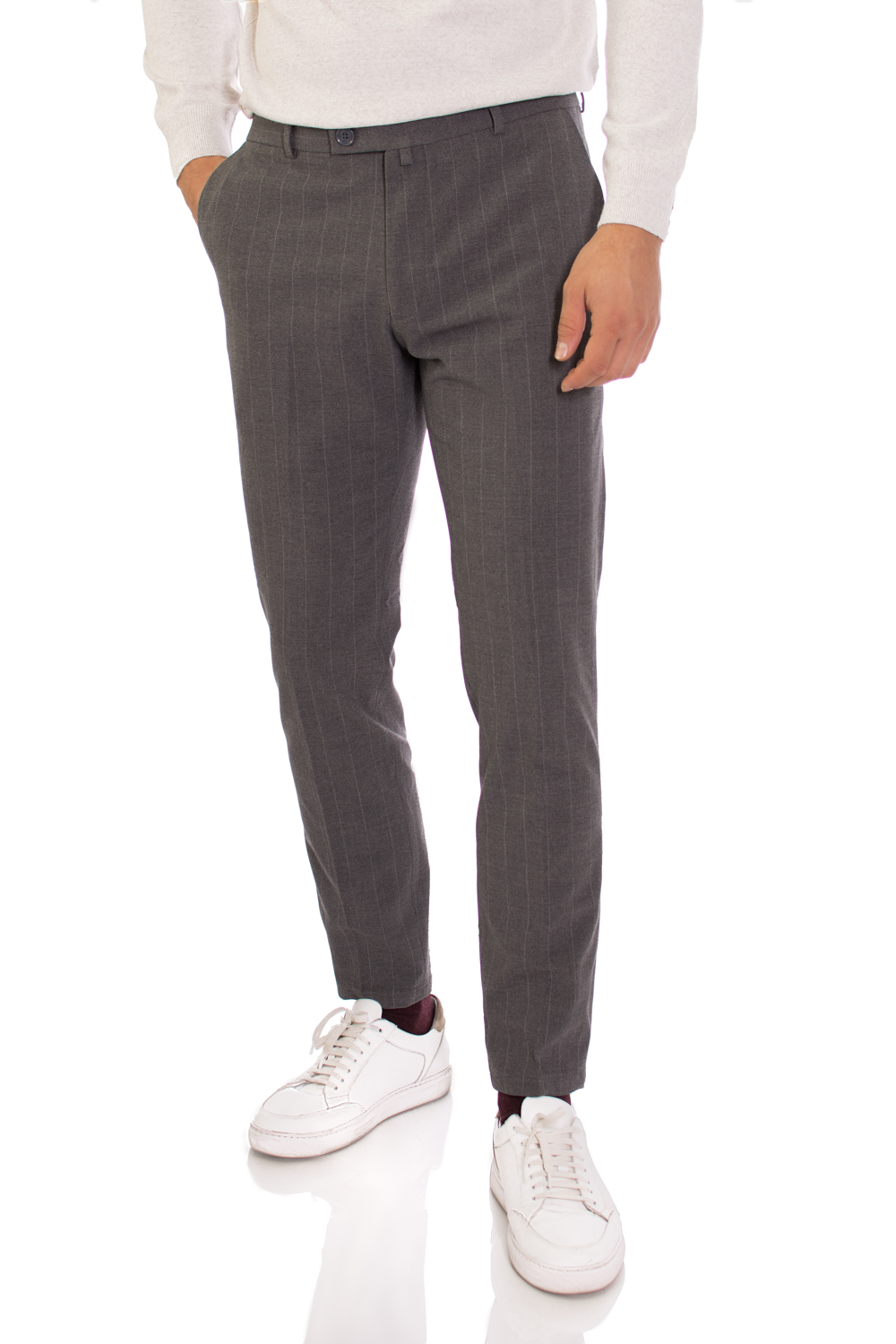 Pantaloni Gri Inchis cu Dungi